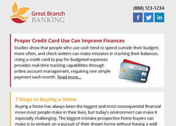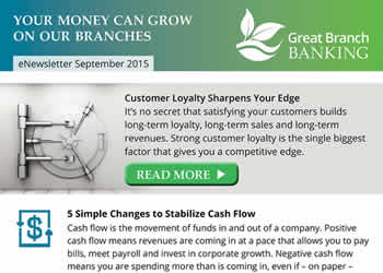 Customer engagement means staying in touch with business and consumer clients on a regular basis. A quick, convenient way to do this is via SBR's cutting-edge e-newsletter content. Besides personalizing customer relationships, our proprietary articles - three to four a month - along with an ad, provide solid opportunities to cross-sell bank products.